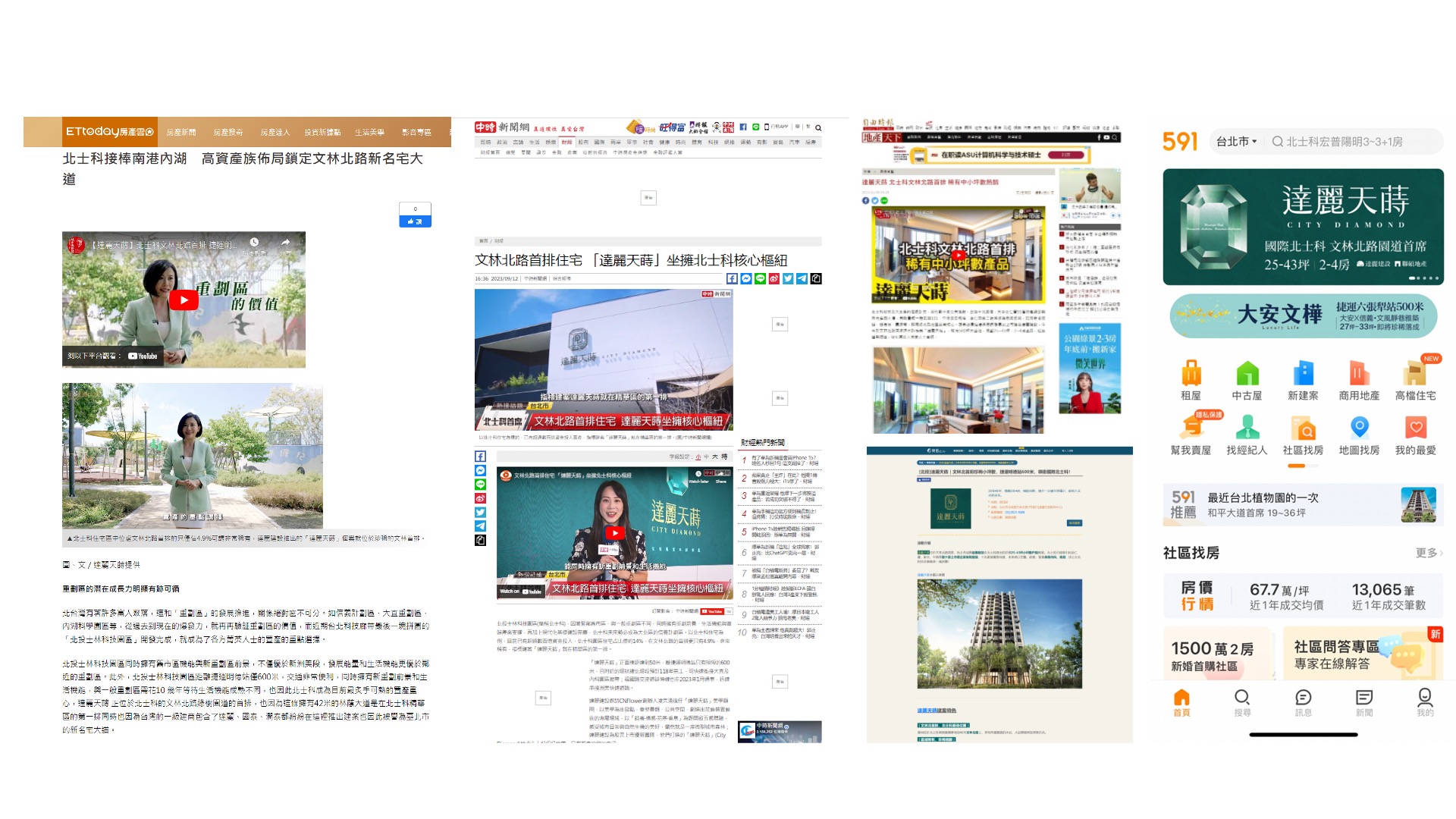 媒體規劃:數位投放成效型媒體,由客戶自操團隊,彥星協助規劃新聞媒體SOT影音廣編,由主播、記者角度帶出北士科週邊環境趨勢與建案特色,並搭配房產垂直性媒體,樂居、591露出。